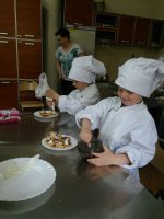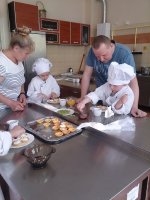 Wszystko odbywało się pod czujnym okiem uczniów z „Norwida" - Moniki, Agaty, Pauliny, Sylwi, Dawida, ale także gości warsztatów- młodzieży Gimnazjum nr 1 w Świdniku –Kingi D., Mateusza i Kingi P., która dzielnie sekundowała przyszłym kucharzom.