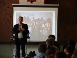 Opowiadał on o warunkach w jakich żyje, uczy i bawi się młodzież z Kuby, kontrastując to z naszymi realiami i razem z panią Ewą Pankiewicz ze Stowarzyszenia Solidarności Globalnej namawiali uczniów do brania udziału w działaniach wolontariatu.