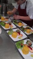 Zaproszonych do „Norwida" gości m.in. patrona turnieju Tomasza Wójtowicza, wicestarostę Waldemara Białowąsa, Panią wicedyrektor Anetę Jagieło i gospodarza szkoły Pana dyrektora Krzysztofa Gałana podjęto wykwintnym obiadem i deserem. Menu zaproponowały Pani Renata Gierszon i Pani Agnieszka Dziedzic, a całość przygotowali uczniowie szkoły – mistrzowie kuchni w swoim zawodzie. Jesteśmy przekonani, że zaserwowane potrawy trafiły w gusta kulinarne gości, a nasi uczniowie mieli okazję, aby pochwalić się umiejętnościami kulinarnymi i nienaganną obsługą kelnerską.