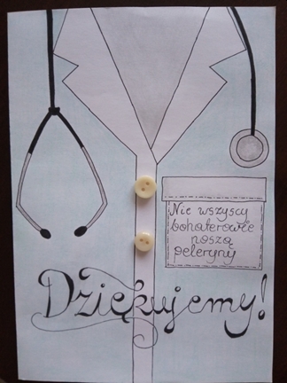 W trudnych czasach pandemii koronawirusa nasi uczniowie pamiętają o osobach, które w tych ciężkich dniach toczą bezpośrednią walkę z wirusem. Pod okiem pani Magdaleny Gołębiowskiej wzięli udział w akcji „kartkadlamedyka zorganizowanej przez portal specjalni.pl. Celem akcji jest podziękowanie pracownikom służby zdrowia za poświęcenie. Polega ona na narysowaniu, namalowaniu (technika dowolna) kartki z życzeniami oraz podziękowaniami.