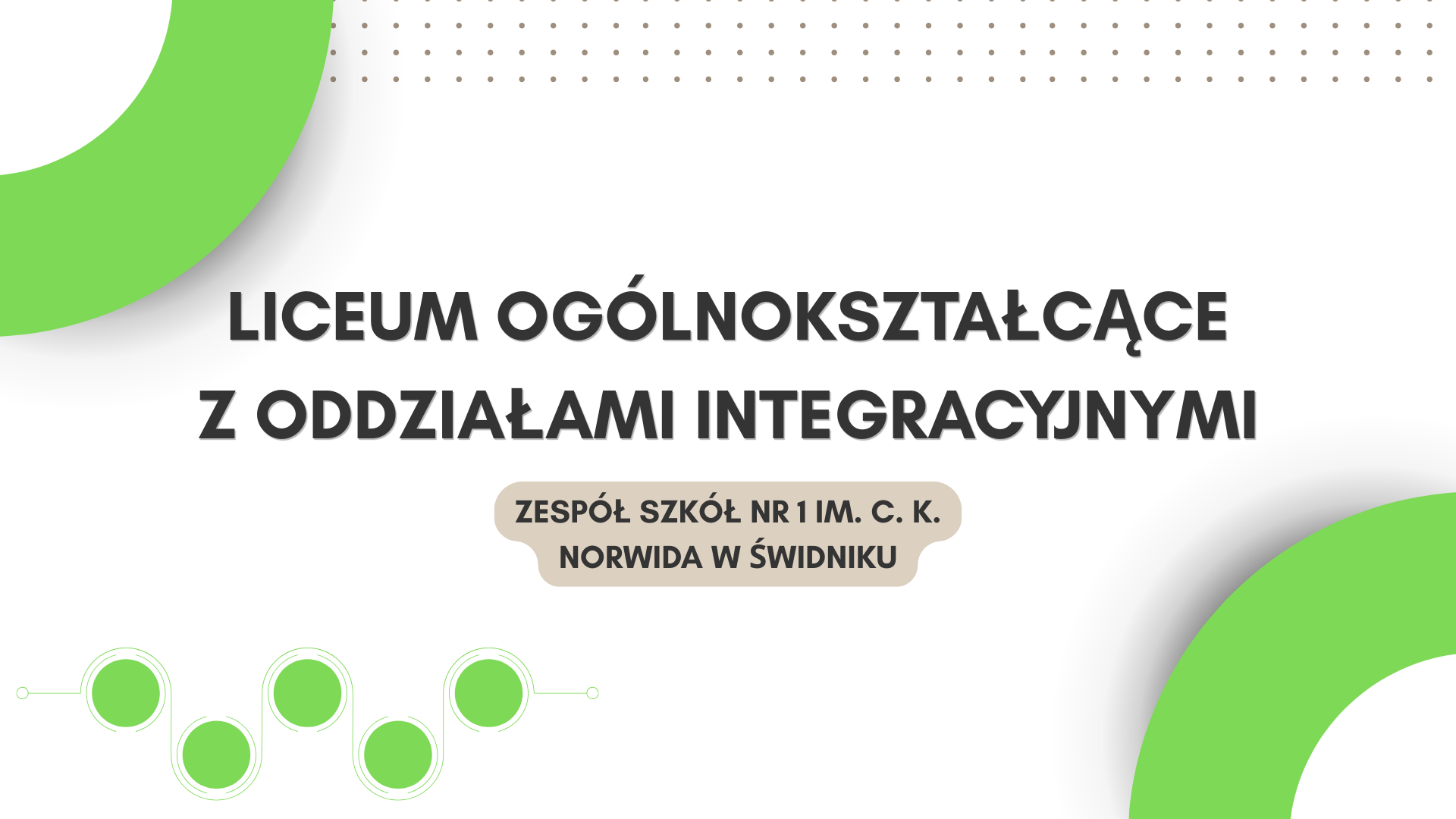 Gdy chcesz uczyć się w szkole średniej, ale nie wiesz, jaki zawód wybrać, nie chcesz uczyć się w technikum i w szkole branżowej, wybierz Liceum Ogólnokształcące z Oddziałami Integracyjnymi.