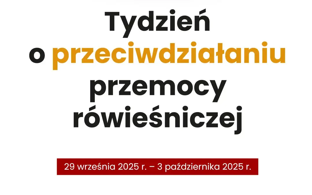 W dniach 29.09- 03.10 zostanie zorganizowany w szkole Tydzień Przeciwdziałania Przemocy Rówieśniczej. Akcja ma na celu promowanie zdrowych relacji, empatii i budowania świadomości na temat różnych form przemocy i sposobów reagowania na nie. W ramach akcji będą rozmieszczone na terenie szkoły infografiki, a także odbędą się zajęcia wychowawcze i warsztaty.