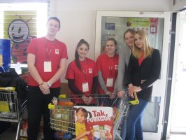 W akcję Caritas tym razem włączyli się Izabela Jędrej, Sylwia Lech, Sylwia Szymczak, Aleksandra Studzińska, Natalia Krysa, Weronika Wójcik, Magdalena Piotrowicz, Damian Brankiewicz, Paweł Socha, Joanna Gliniak, Weronika Potręć, Paulina Sygara, Patrycja Oleszko, Patrycja Klasowska, Kamila Niejedli i Klaudia Gągoł. Wolontariusze gorąco zachęcali kupujących do podzielenia się produktami żywnościowymi z potrzebującymi rodzinami z terenu Świdnika i Lublina. Nad prawidłowym przebiegiem akcji czuwali Agnieszka Mazurek i ks. Grzegorz Gut – opiekunowie Szkolnego Klubu Wolontariatu.